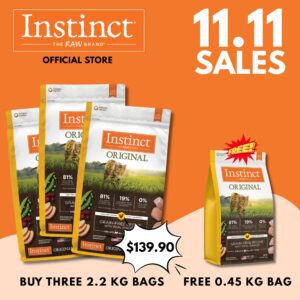 Upgrade your dog’s bowl from kibble to freeze-dried raw. Each Instinct Raw Freeze-Dried Meals recipe is protein packed with 85% meat & organs and 15% non-GMO fruits, vegetables; vitamins & minerals. Made without grain, corn, wheat, soy, legumes, artificial colors or preservatives.